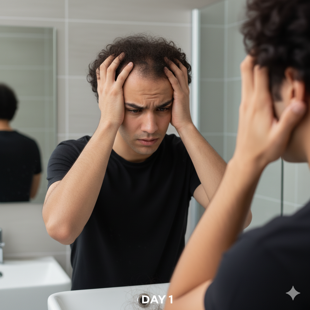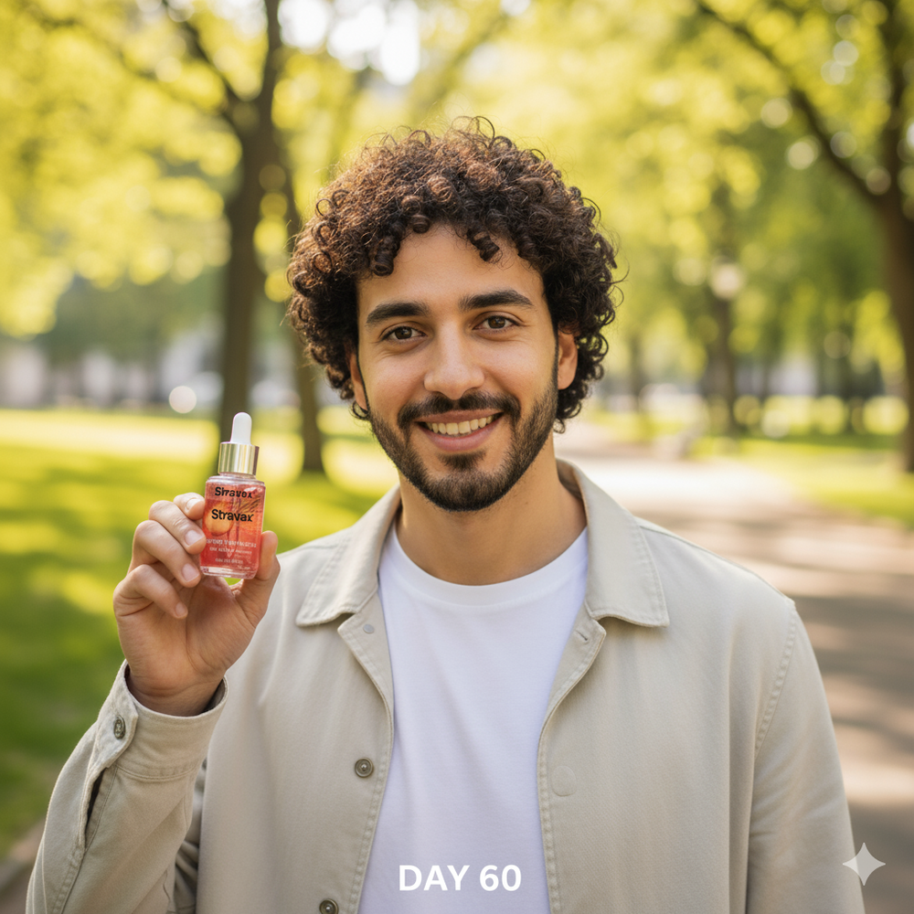Hamza used to notice every thinning patch in the mirror, and it was affecting more than just his hair — his confidence, his dating life, even how he carried himself around friends. After 60 days with Stravax© Growth Repair Serum, his curls look fuller, thicker, and healthier. Now he walks into rooms with pride, gets compliments instead of stares, and finally feels like the version of himself he’s always wanted to be.
